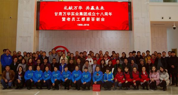 萬(wàn)華集團(tuán)創(chuàng)新發(fā)展十八年,每年12月份都會(huì)邀請(qǐng)老員工歡聚一堂,大伙聚在一起,聊一聊,談一談今年的收獲和來(lái)年的展望。甘肅萬(wàn)華實(shí)業(yè)集團(tuán)成立十八周年暨老員工感恩答謝會(huì)于12月29日下午5時(shí)在甘肅互聯(lián)網(wǎng)創(chuàng)新創(chuàng)業(yè)大廈拉開(kāi)帷幕。本次答謝會(huì)以“禮獻(xiàn)萬(wàn)華共贏未來(lái)”為主題,甘肅萬(wàn)華實(shí)業(yè)集團(tuán)有限公司董事長(zhǎng)牛新民先生,萬(wàn)華集團(tuán)董事張惠英、虞雪梅,董事會(huì)特邀嘉賓,圣方舟律師事務(wù)所代表,萬(wàn)華集團(tuán)各公司高管和萬(wàn)華老員工共計(jì)108人出席本次答謝會(huì)。